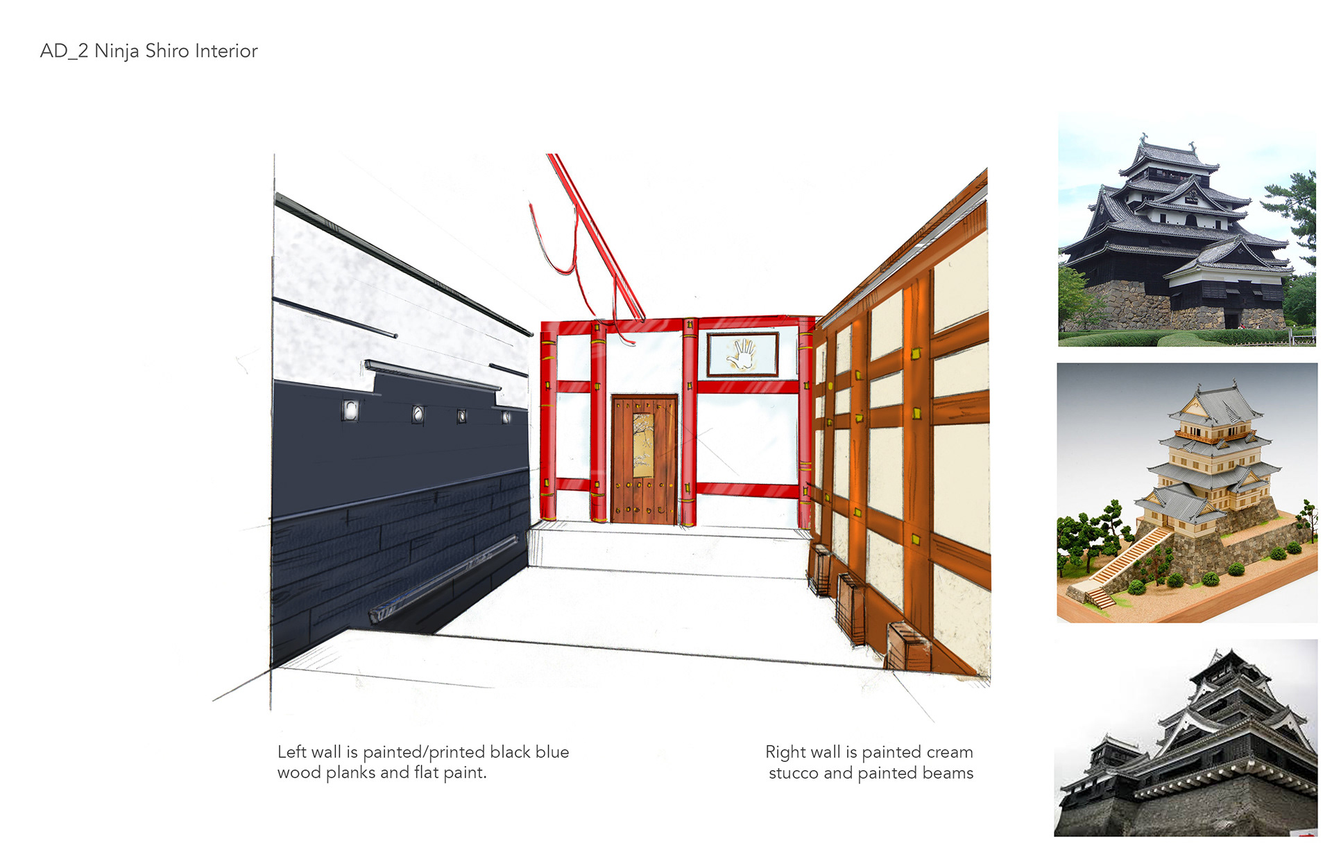 I was hired by Chicago Scenic Studios to design the themed environments for new challenge and escape rooms for 5 Wits / Level 99.  I was given the spaces laid out using their modular wall system with notes regarding required elements for the interactive elements.